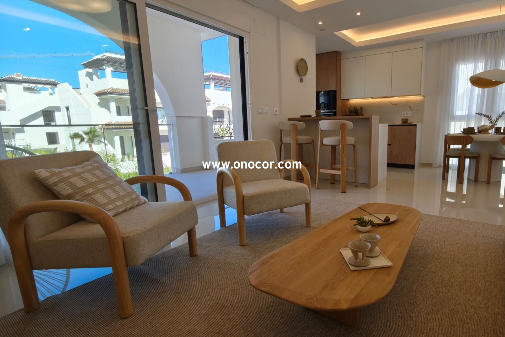Die geschlossene Wohnanlage bietet eine atemberaubend schöne Gartenanlage im mediterranen Stil sowie einen großen Gemeinschaftspool. Zum Apartment gehört außerdem ein PKW-Stellplatz.
