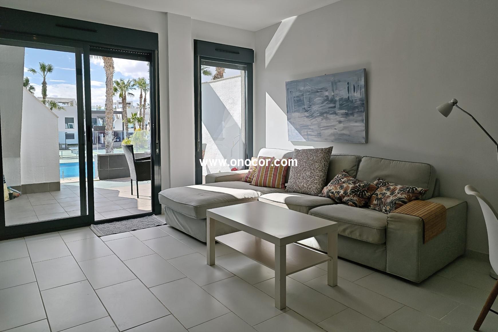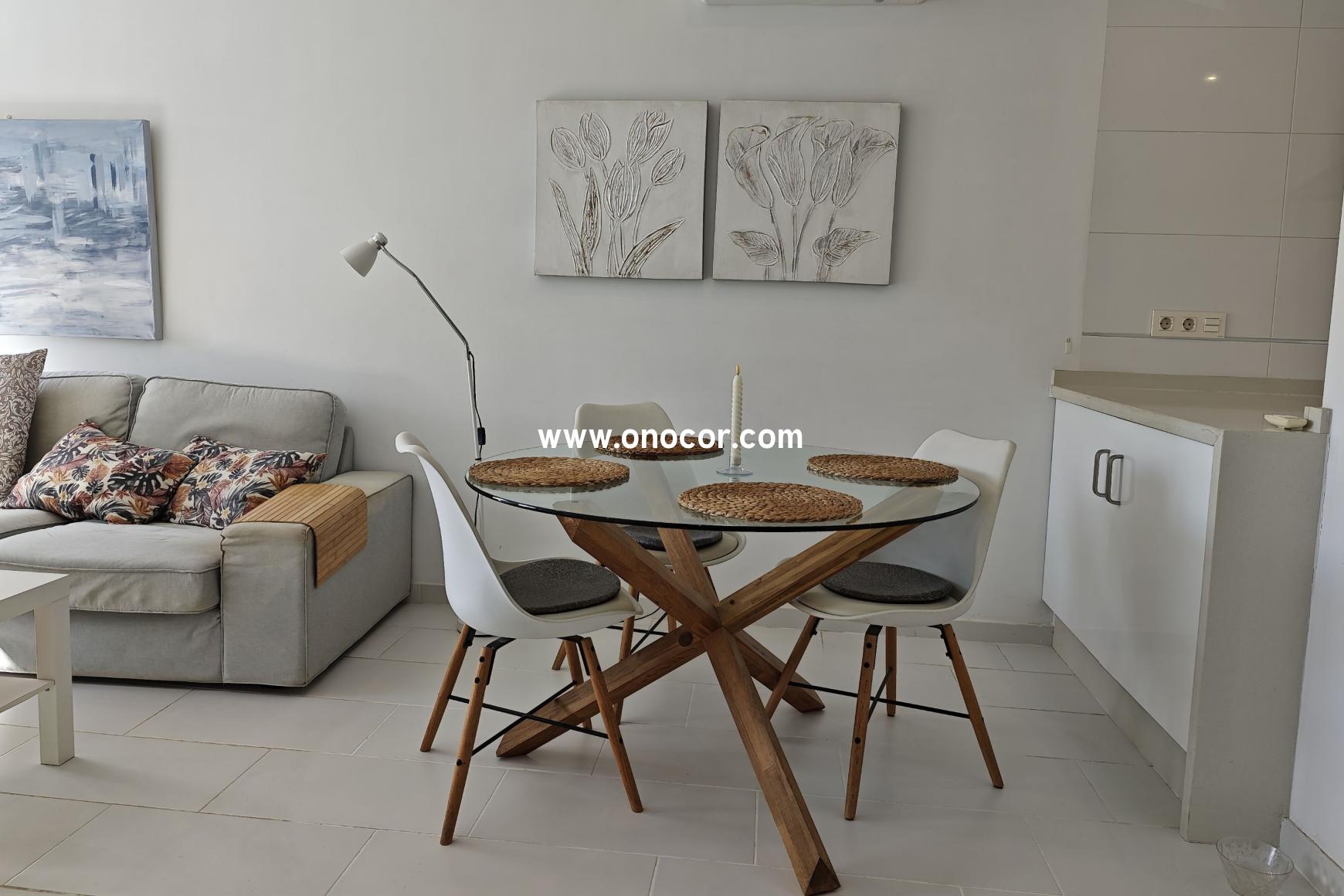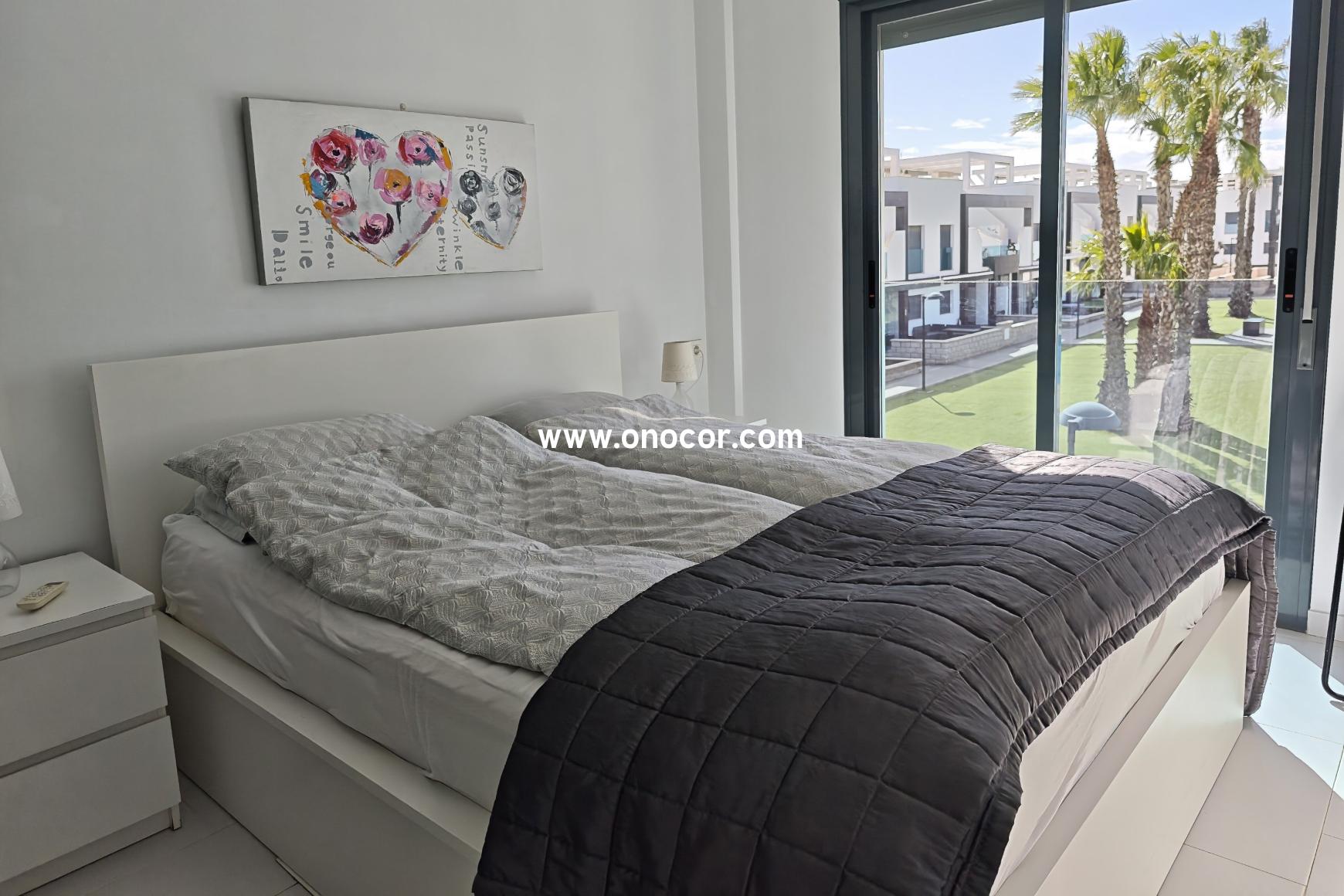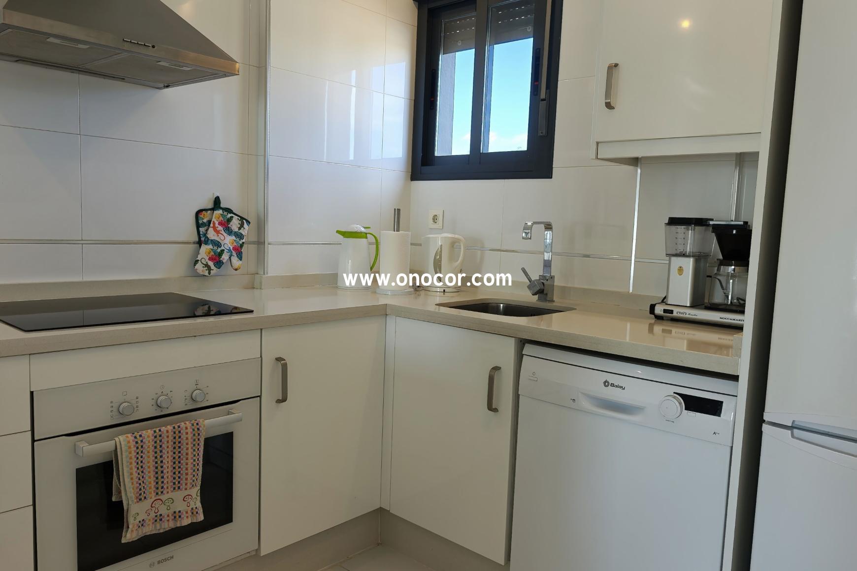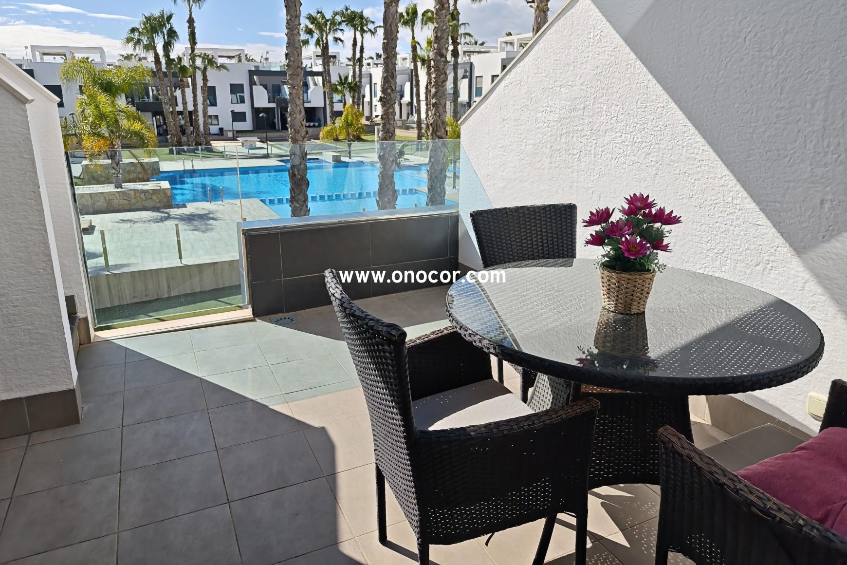 The penthouse is located in one of the most prestigious residential complexes on the Costa Blanca, in Oasis Beach, directly on the Zenia Boulevard in La Zenia, within walking distance of La Zenia beach. The apartment overlooks the landscaped gardens and the swimming pool of the complex. Shops, restaurants, and leisure facilities are all nearby.