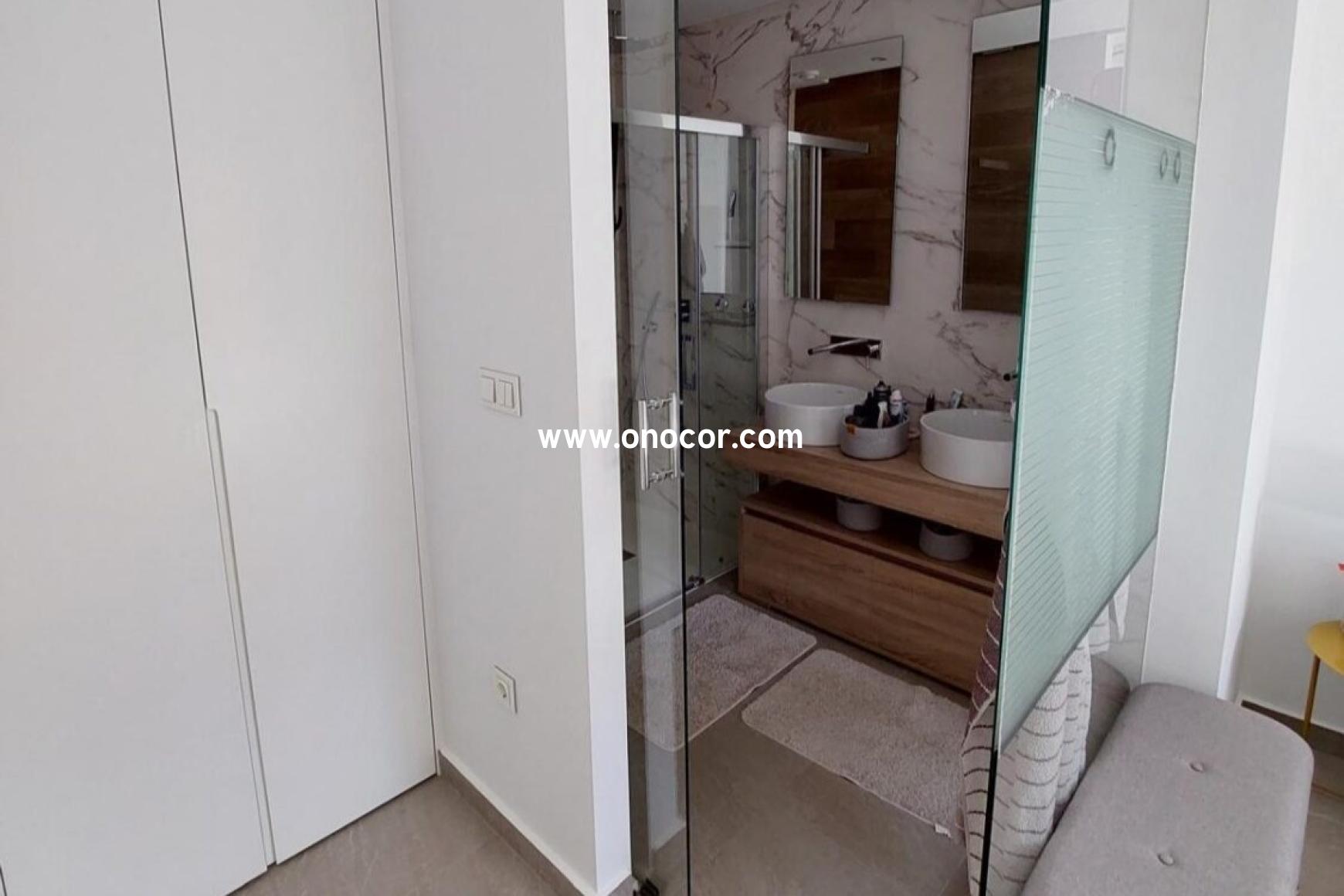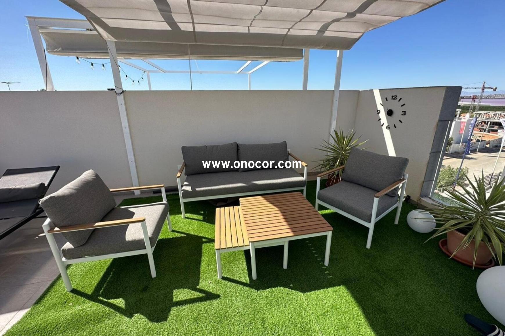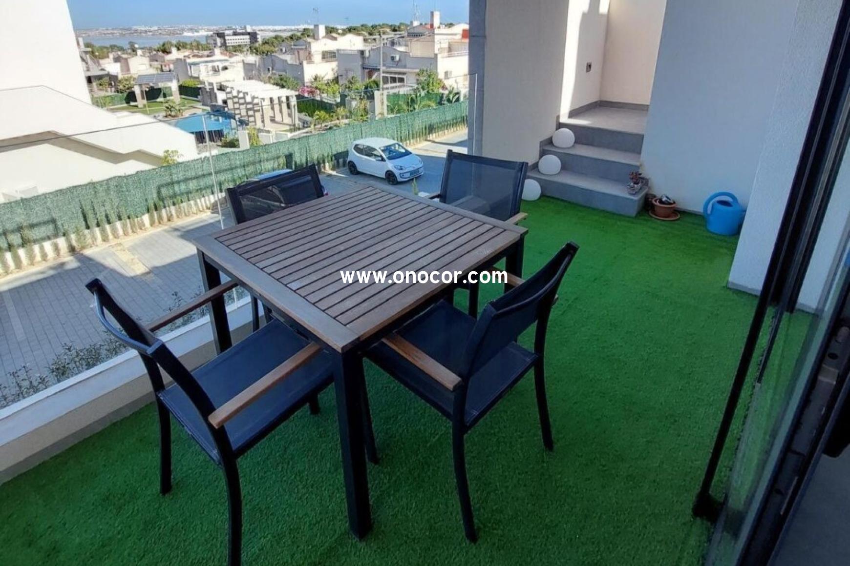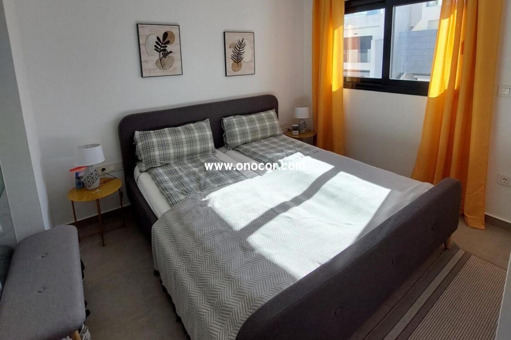 Dieses moderne Penthouse-Apartment aus dem Jahr 2022 in Los Balcones befindet sich in einer geschlossenen Wohnanlage, die leicht erhöht liegt. Auf 78 m² Wohnfläche bietet es 2 Schlafzimmer, 2 Badezimmer, eine offene Küche sowie einen 8 m² Balkon.