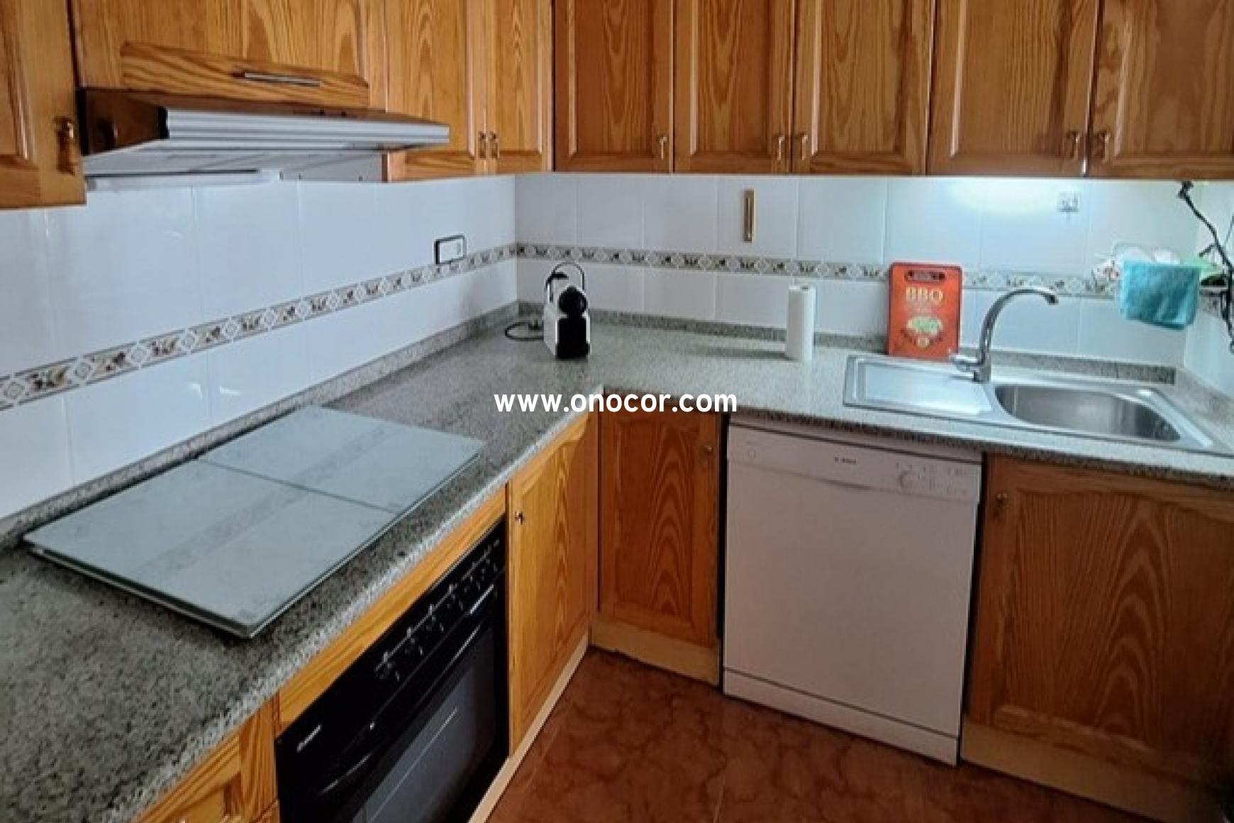 Die freundliche Wohnanlage verfügt über zwei gemeinschaftliche Swimmingpools. Supermarkt, Café und Restaurants sind bequem zu Fuß erreichbar, und das Meer liegt nur etwa 300 Meter entfernt.