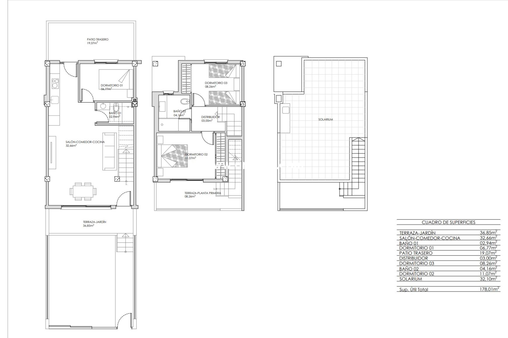 Modernes Neubau-Reihenhaus in Cox an der Costa Blanca Süd mit 82 m² Wohnfläche auf einem 101 m² großen Grundstück. Die Immobilie verfügt über 3 Schlafzimmer und 2 Badezimmer sowie eine funktionale, zeitgemäße Raumaufteilung und wird nach aktuellen Baustandards errichtet.