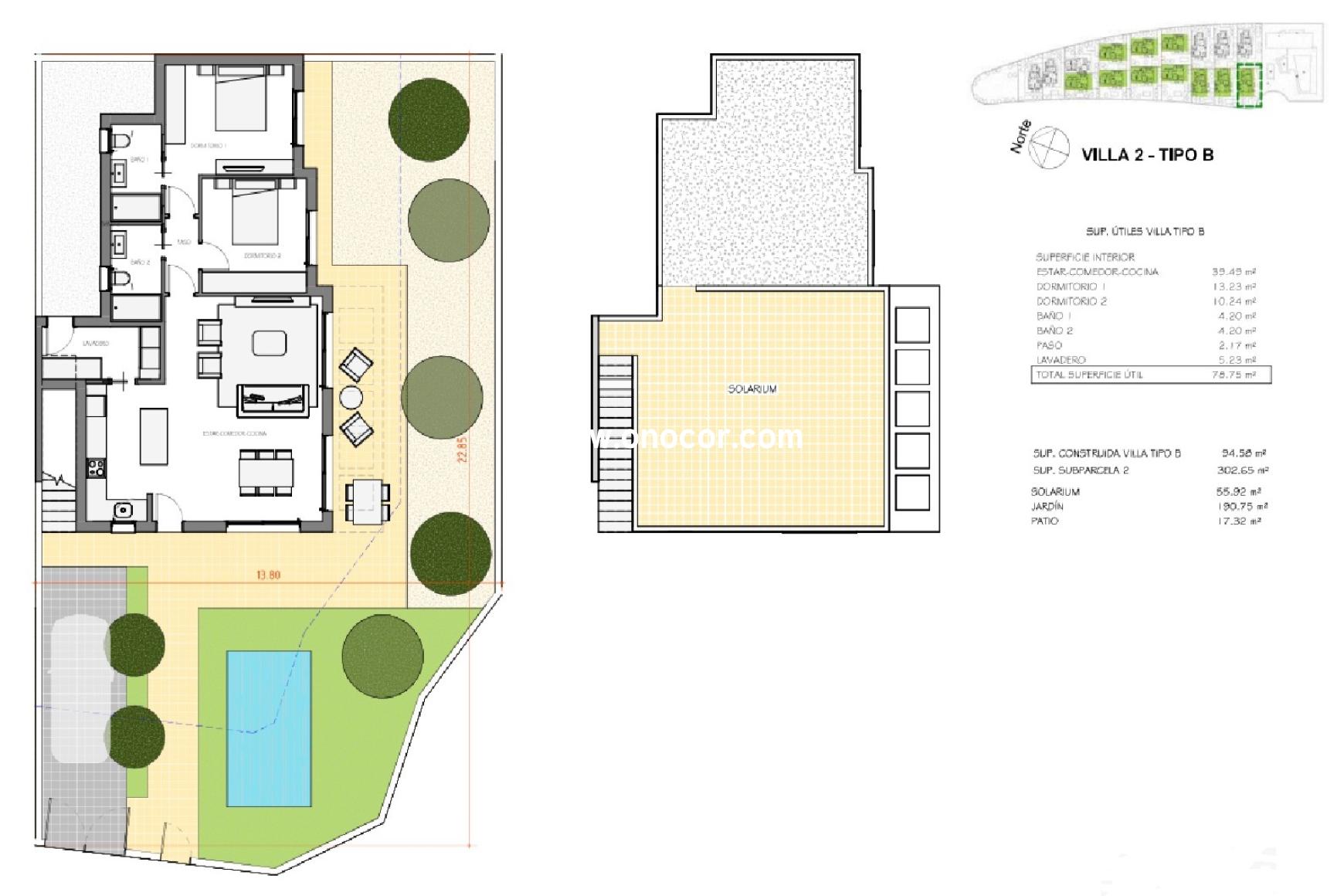 Die Villa befindet sich im renommierten Hacienda del Álamo Golf Resort in Murcia. Das Resort besticht durch eine ruhige, gepflegte Umgebung und einen hochwertigen 18-Loch-Golfplatz. Die Städte Murcia und Cartagena sowie der internationale Flughafen sind schnell erreichbar, was die Immobilie sowohl für Urlauber, ganzjähriges Wohnen als auch für Investoren besonders attraktiv macht.