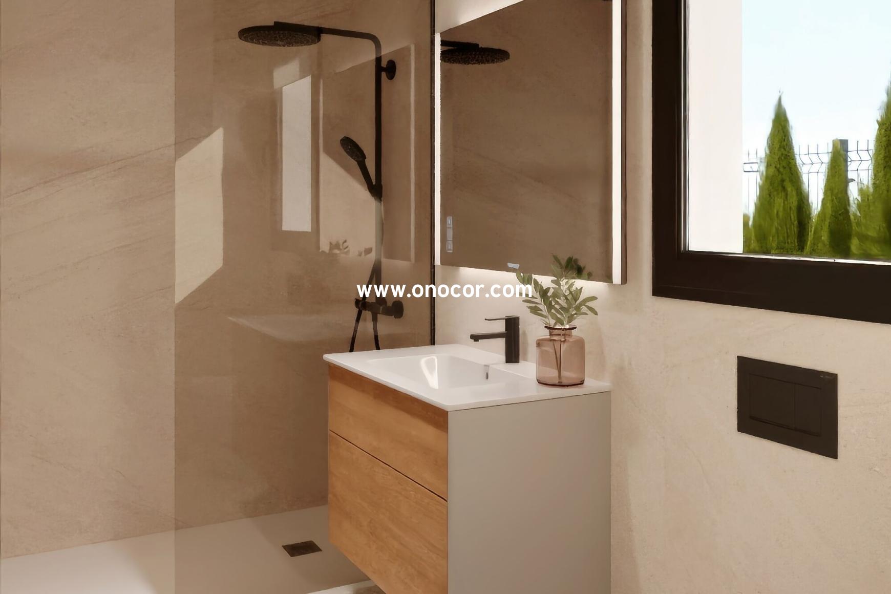 Die Villa Victoria bietet auf einem ca. 350 m² großen Grundstück eine perfekte Verbindung aus Privatsphäre, Komfort und mediterranem Lebensstil. Die 94 m² Wohnfläche sind modern geschnitten und schaffen ein helles, einladendes Ambiente. Ein besonderes Highlight ist die großzügige 50 m² Dachterrasse, die einen weiten Blick über das Resort bietet – ideal zum Entspannen oder für gesellige Abende.