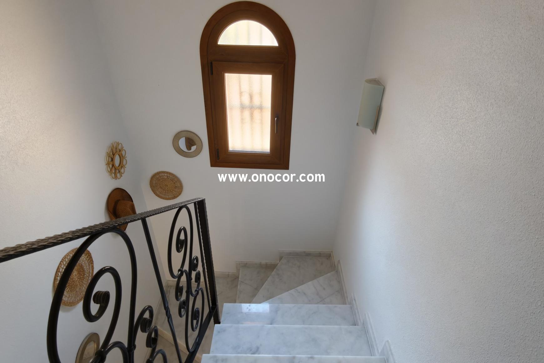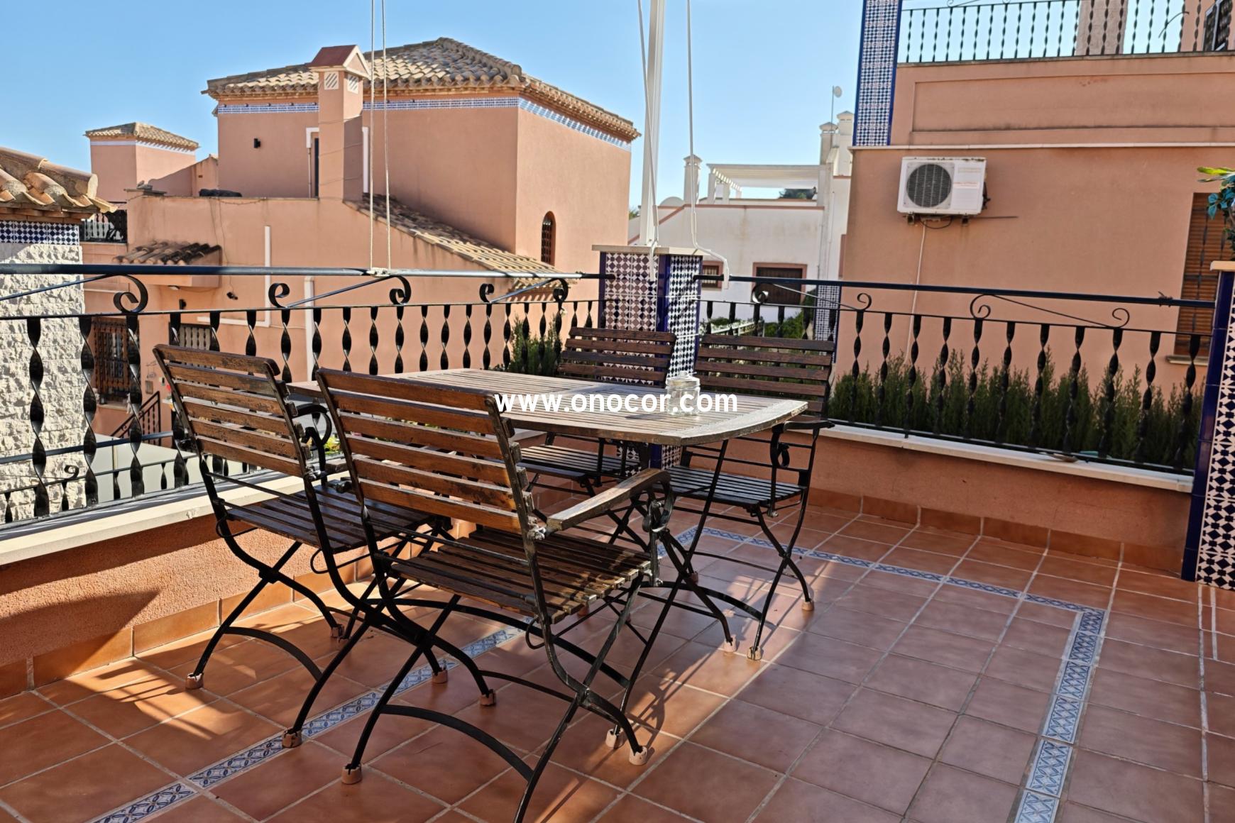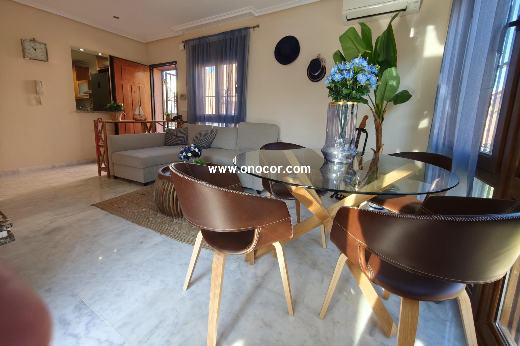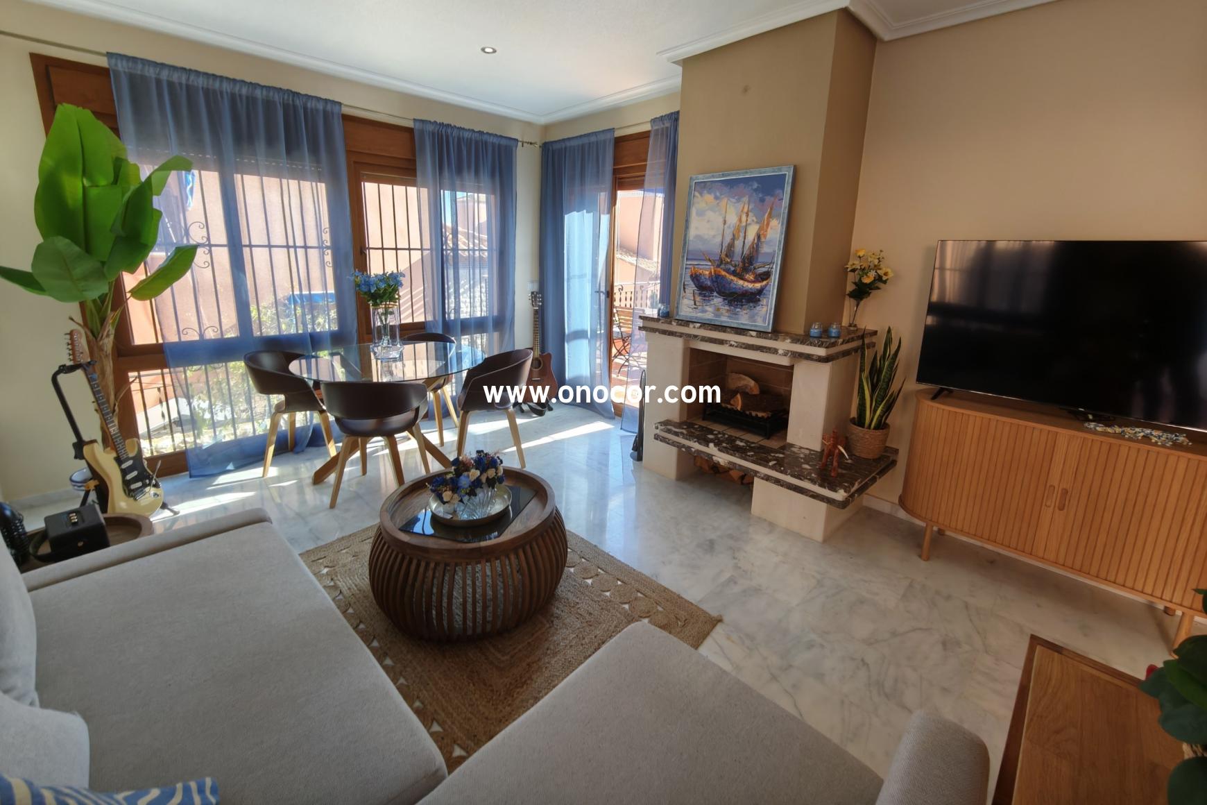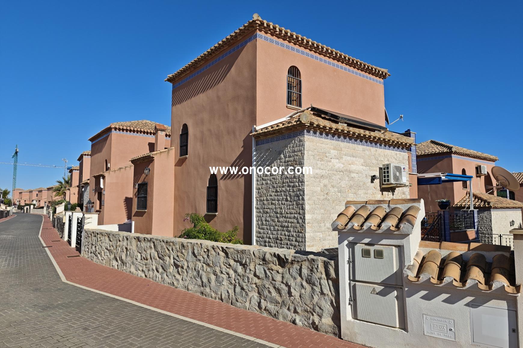 Diese exklusive mediterrane Villa in El Mirador de San Miguel de Salinas liegt nur wenige Minuten von den Golfplätzen Campoamor und Las Colinas sowie den Stränden von Cabo Roig entfernt und bietet einen wunderschönen Blick auf das Meer und die Salzseen. Die Villa verfügt über 3 Schlafzimmer, 2 Badezimmer, einen hellen offenen Wohnbereich mit integrierter Küche sowie eine große Terrasse, einen privaten Garten und ein Dachsolarium mit beeindruckenden Panoramablicken. Weitere Highlights sind Klimaanlage, Kamin, Solaranlage, ein privater Parkplatz und der Zugang zu einer der schönsten Poolanlagen der gesamten Umgebung. Ideal als permanentes Zuhause, Urlaubsdomizil oder Investitionsobjekt.